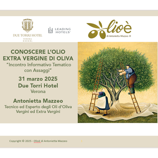 Con l'incontro Informativo Tematico con Assaggi “Conoscere l’Olio Extra Vergine d’Oliva” tenutosi il 31 marzo 2025, al Due Torri Hotel di Verona, si è conclusa la prima fase del progetto relativo alla formazione sull’Olio Extra Vergine di Oliva, del personale di sala e di cucina, degli Hotel del Gruppo Due Torri, e alla predisposizione della Carta degli Oli, in cui saranno inseriti Oli del territorio , provenienti da aree geografiche differenti.